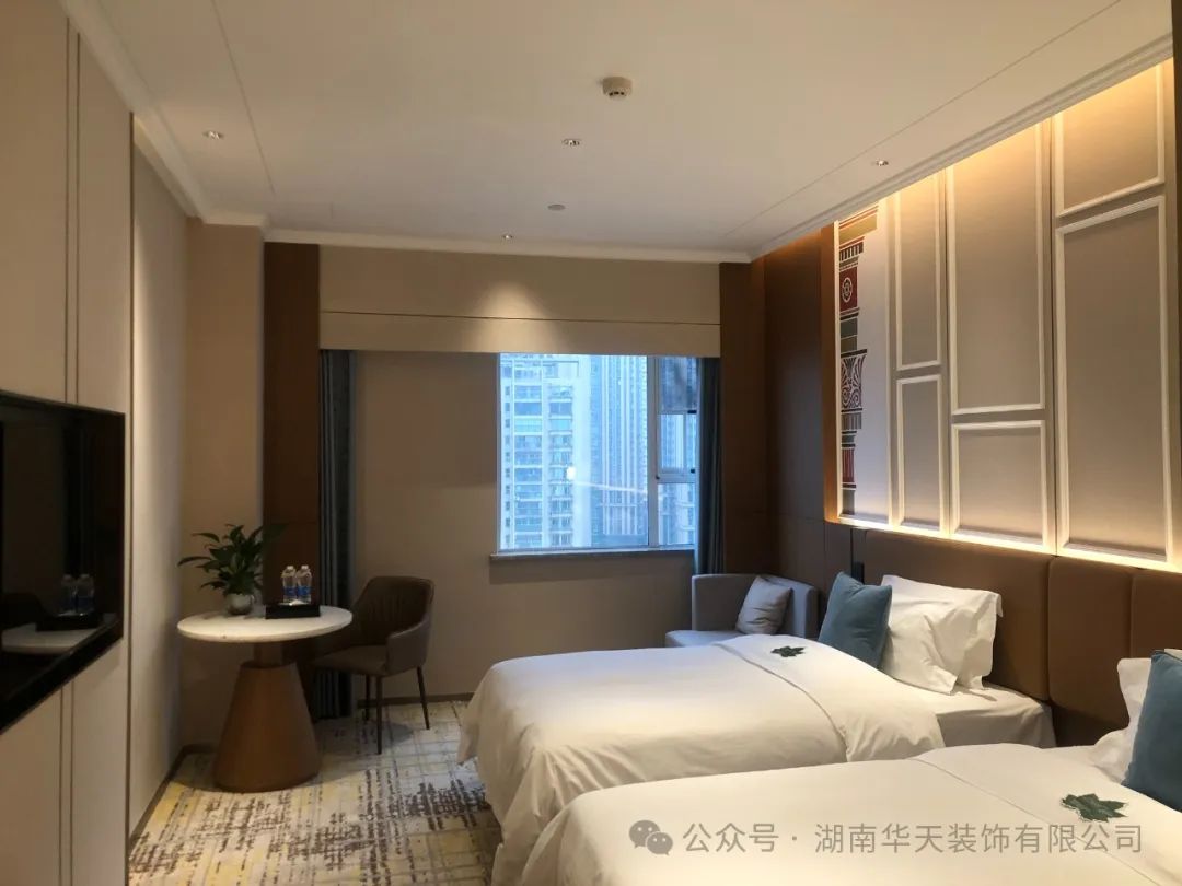 华悦阳光酒店客房维修改造工程样板房于近日竣工。1月12日,湖南湘投阳光集团有限公司董事长肖艳菊率领导班子现场视察。